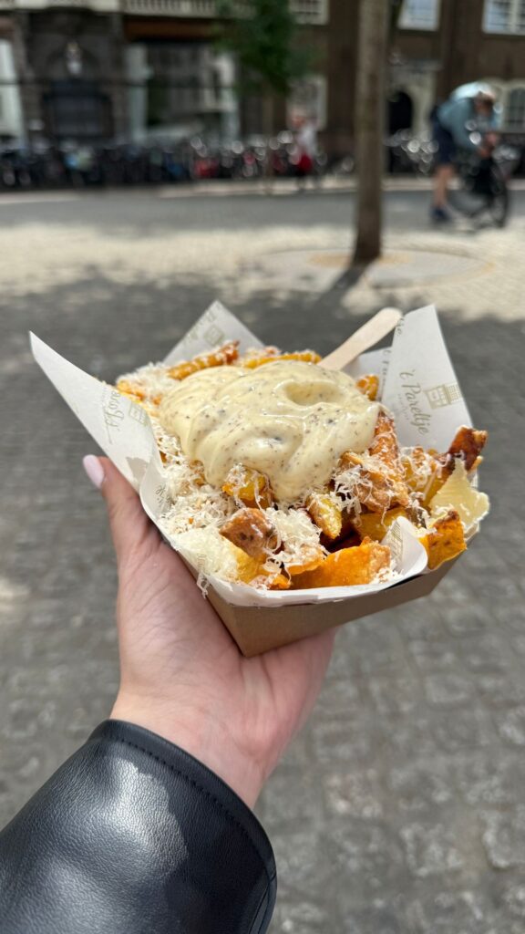 Before diving into more sightseeing, grab a quick bite at ‘t Pareltje, a no-frills local favorite known for its crispy Dutch fries served with classic toppings like truffle mayonnaise sauce. It’s the perfect fuel for an afternoon of exploring—and a must-try street food experience in Amsterdam!
