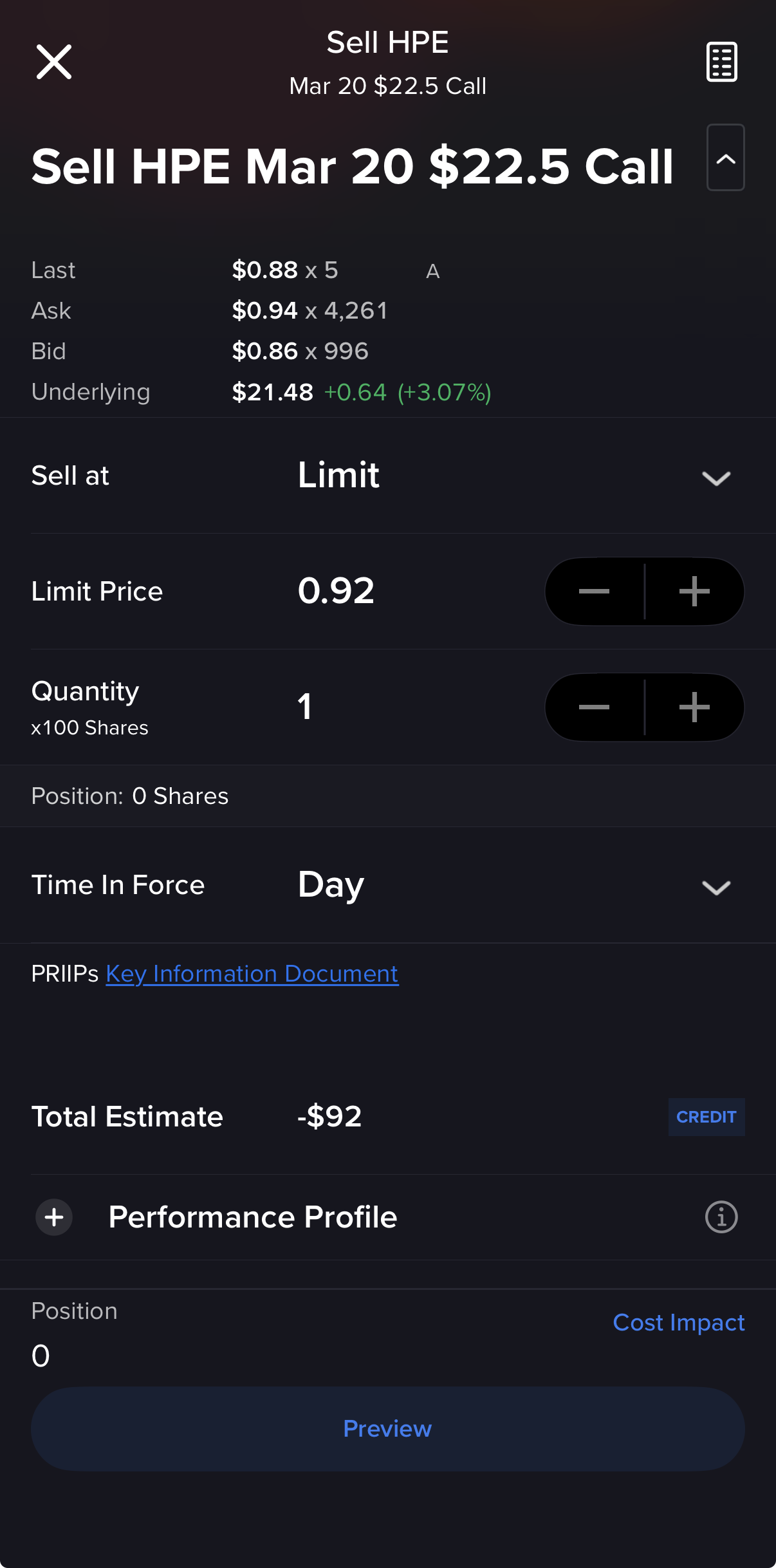 6. Review and Submit the Order (always use Limit Orders with Options)